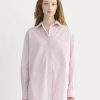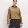 This piece is made from FSC-certified viscose and features a relaxed fit. short. capped sleeves. button closure at back neck. and a classic crew neckline with shirring detail.