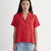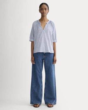 A lightweight textured organic cotton gauze gives this relaxed V-neck. short-sleeve blouse an airy feel with just the right amount of shape. Throw it on over shorts or a shirt for a lunch date or add wide-leg pants for work.