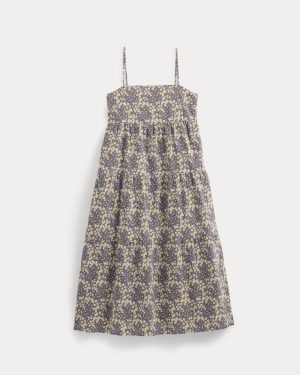 This piece features a relaxed fit. tiered. maxi length dress with shirred detailing. on seam pockets and full lining.