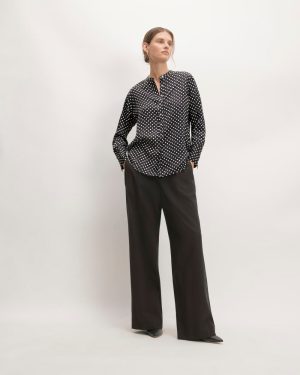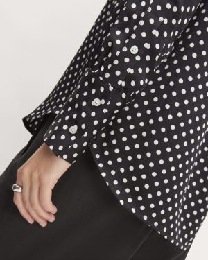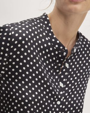 The Hammered Satin Popover Shirt | Black / Bone Polka Dot