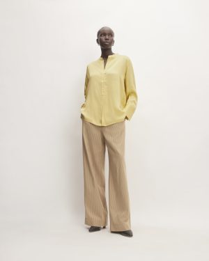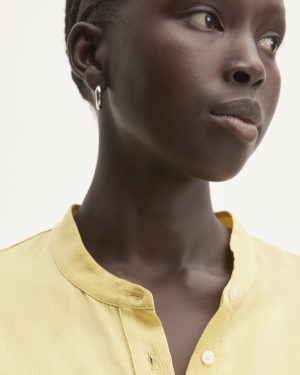 A versatile shirting option. the Hammered Satin Popover Shirt cuts an elegant form with a neat stand collar. center-front button placket. button closure at the cuff and sleeve. A shirt-tail hem and yoke feature at the back. It’s made with our hammered satin FSC-certified viscose which has a slight sheen for a little extra polish. The viscose in this garment comes from a supplier who was awarded a Dark Green Shirt designation by CanopyStyle. indicating that they have been audited and assessed as being at low risk. or has taken substantive action to eliminate known risk of sourcing rayon and viscose from Ancient and Endangered Forests.