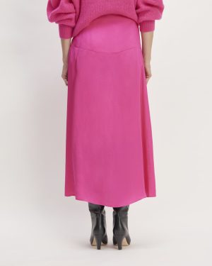 The Hammered Satin Slip Skirt | Fuchsia Pink