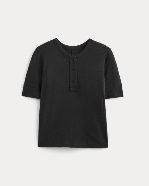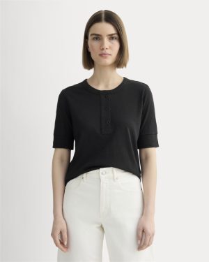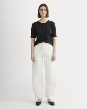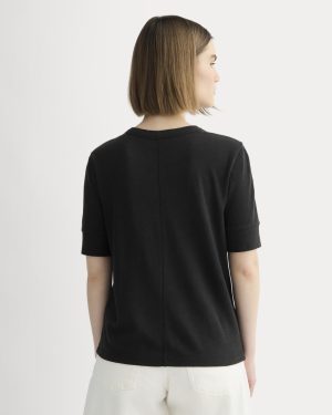 Featuring a wide placket. crew neckline. and boxy fit. this tee has cuffed short sleeves that hit just above the elbow. Made with our drapey blend of OCS-certified organic cotton and European Flax™ Linen.
