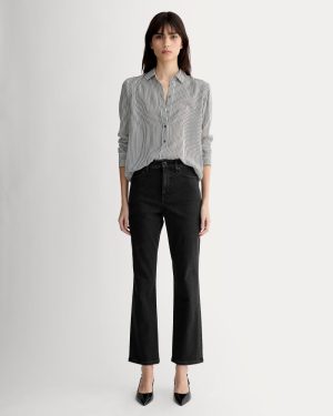 Our highest ever rise accentuates your true waist and holds you in with a slim-leg silhouette. Plus. this piece is equal parts tailored meets comfort and made from our newest high-stretch. medium weight organic cotton blend—for the perfect amount of flexibility and structure. so sitting down isn’t a dealbreaker. Due to an extra high rise. we suggest sizing up if you prefer more ease around the waist.
