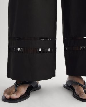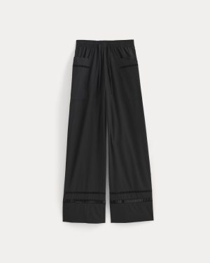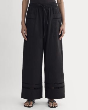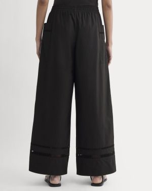 This relaxed. full-length wide-leg pant features an elastic waist and drawcord closure for an easy fit. Wraparound patch pockets and a lace trim on the hem give it an elevated edge. Made with organic cotton. Wear it barefoot at home. with sandals by the beach. or dressed up with heels for a night out.