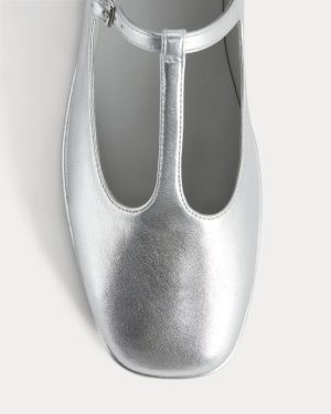 Be the first to review “The Leather T-Strap Flat | Silver” Cancel reply