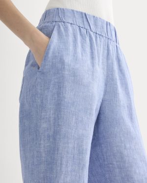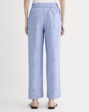 This piece features a mid rise. straight fit. regular length. and pull-on waistband. made with 100% linen.