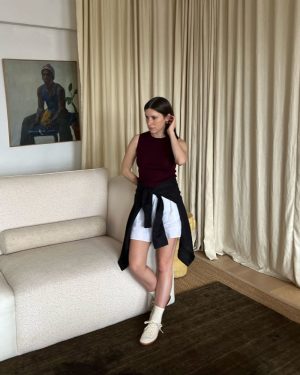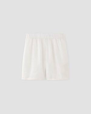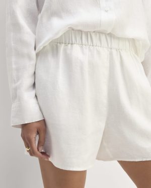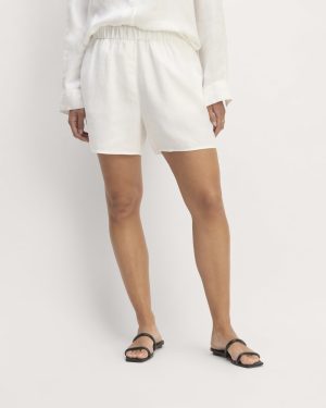 This piece features an elasticated waistband. front slash pockets. two back patch pockets. in 100% lightweight. breathable linen.
