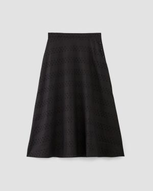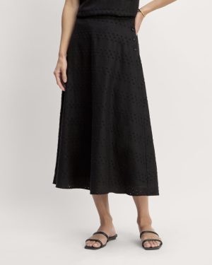 The Linen Eyelet Midi Skirt | Black Eyelet
