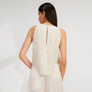 Made of 100% linen. the Linen High-Neck Tank is a simple. yet versatile silhouette you’ll be reaching for again and again. Featuring a classic crewneck. an easy fit with top stitch details. and a button-closure at the back of the neck. you’ll want one in every color. Try sizing down if you prefer your tops to have a slimmer fit.