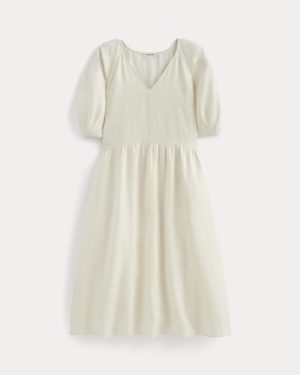 The Linen Oversized Puff-Sleeve Dress | Bone