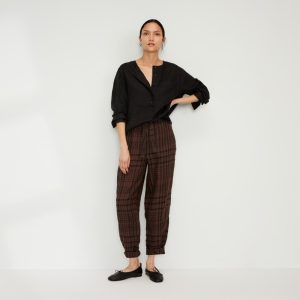 Featuring a wide crew neck. center front placket with a classic front pocket. back yoke with centered box pleats. and self-fabric covered buttons. The sleeves have deep cuffs. that can easily be turned up when the weather gets a little balmy. Made from flax. which generally creates less waste from production. linen has high resilience with a reduced carbon impact compared to cotton—using lower amounts of water. pesticides. and chemical inputs.