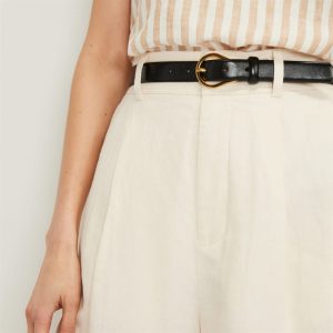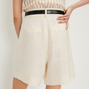 Our signature top-block is now in short-form. The Linen Way-High® Drape Short features the same classic features as the Way-High® Drape Pant; with an internal zip and hook and eye button closure. slanted front pockets. back welt pockets. and front pleats. The best part? It features a longer inseam of 5 ½. Pair these with our Linen Oversized Blazer for the perfect summer set. Made from flax. which generally creates less waste from production. linen has high resilience with a reduced carbon impact compared to cotton—using lower amounts of water. pesticides. and chemical inputs.