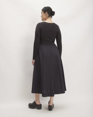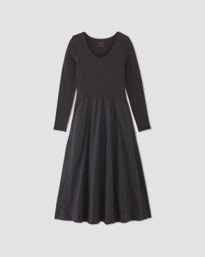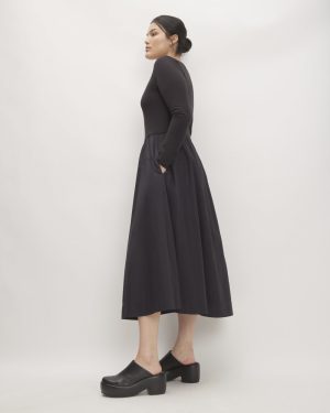 Made from a stretchy Supima® cotton jersey. The Riviera Dress features a comfortable long-sleeve knit top with a rounded scoop neck and a voluminous woven bottom. The top portion is made from our ultra-soft and durable Supima® cotton. while the skirt is made with 100% cotton for all-day breathability. The pinnacle of versatility. Did we mention it has pockets? Grown in the United States. Supima® cotton is distinguished by its extra-long fiber length. which gives it more durability and a softer hand feel. Supima® is able to authenticate the source of its cotton across the entire supply chain. from the fiber and yarn to the fabric and finished product.