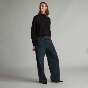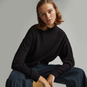 The Luxe Merino Turtleneck features a warm blend of RWS-certified sheep wool and yak wool. a square neckline. funnel neck and a cropped hem. Wear it on its own over a dress or pair it with any of our Way-High denim—you’ll look cool while staying warm. Fun Fact: Our partner mill in Tibet works with 60 local co-ops to source their yak wool. 30% of the profits from their yak program goes back to the farmers in the area to fund education. gender-equality initiatives. healthcare. and everyday essentials. Yak are also gentle grazers. leaving grass roots embedded in the soil. which helps ensure the continuation of vegetation growth. For all animal fibers. we take extra precautions to ensure humane treatment. For more information. check out our sustainability initiatives.