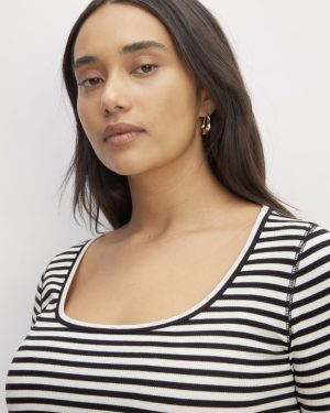 The Luxe Rib Scoop-Neck Tee | Bone / Black
