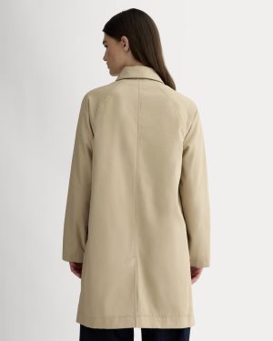 Our classic Mac Coat is back and even better in organic cotton. An easy addition to your outerwear lineup. the Mac Coat has front button fastenings. a collar with stand button closure details. slanted welt pockets. a back vent. and is half lined.