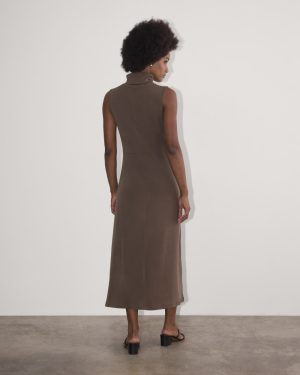 A dress that puts the versatile into style. its maxi length. folded turtleneck. sleeveless silhouette. and body-skimming fit is the kind of effortless you need in your life. Made with our Butterknit fabric. it has a super soft. drapey feel with a little sheen. Wear for work. brunch. nights out. or hangs at home. this dress just wants to make you look good doing it all.