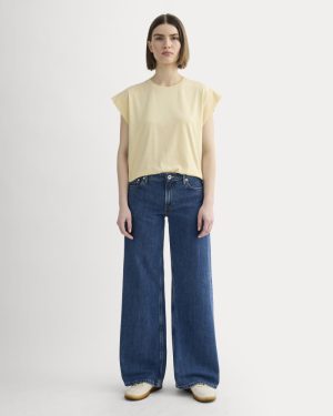 The Muscle Tee in Essential Cotton features a delicate rib-trim crewneck. double layer cap sleeves and exaggerated shoulders. Its relaxed. boxy fit is perfect for working out (or not. we won’t tell). Our favorite part? It’s made from certified organic cotton. This tee has a boxy fit with longer armholes. we recommend sizing down for a slimmer fit.