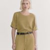 This piece features a relaxed fit. short sleeve. notch collar. and button closure. in linen.