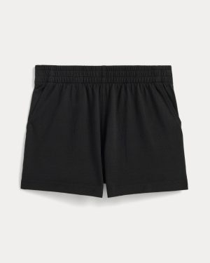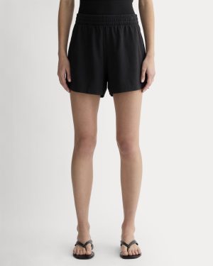 This piece features a high rise with an elastic waistband. comfortable fit through leg. a 3 1/2 inseam. front side seam pockets. and one back patch pocket. made from premium organic cotton.