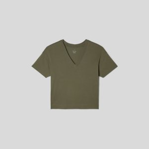 The Organic Cotton Slouchy V-Neck features a deep V neckline. dropped shoulders. elongated short sleeves with double-layered cuffs. and an oversized shape that hangs effortlessly above the hip. Plus. it’s made of super-soft organic cotton. which makes it breathable and soft to the touch. Trust us: You won’t want to take it off.