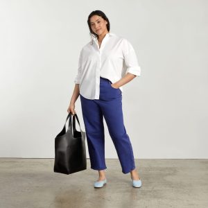The Oversized Poplin Shirt adds instant polish to any look. A half-placket and dropped shoulders give it a refined feel that goes easily with denim. Cotton poplin is densely woven. making it both durable and breathable. also giving it a crisp. cool feel.