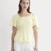This piece features an oversized fit. long sleeves. band collar. button-front closure. and back yoke in 100% organic cotton.
