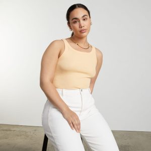 Your favorite tank–cropped.This essential tank is made of Micro Rib. our extra-fine ribbed pima cotton. Pair it with the Way-High Jean and the Oversized 80’s Blazer for a perfect put-together outfit.
