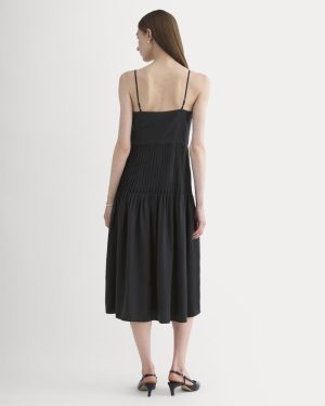 This easy midi-length slip dress features a V-neckline. adjustable straps. and pleat detailing throughout the bodice. Made with our soft. drapey TENCEL™ Lyocell fabric. Pair it with slingback heels and a mini bag for evening. or layer over a fitted tee with sneakers for a daytime look.