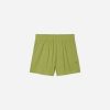 The Poplin Pleated Taper Pant features a tapered leg silhouette. with front pleats and a skinny self-tie belt. Made with 100% cotton. it has slanted front pockets and welt back pockets with button closures. Dress it up with heels or down with sneakers. Cotton poplin is densely woven. making it both durable and breathable. also giving it a crisp. cool feel.