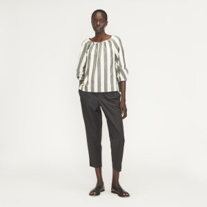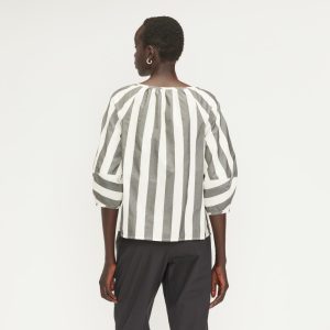 Top off your look with The Poplin Scoop-Neck Top. Featuring a gathered open crew neck and 3/4 length balloon sleeves. it has a relaxed fit that’s easy to tuck in or wear loose. It’s made with 100% breezy cotton. Cotton poplin is densely woven. making it both durable and breathable. also giving it a crisp. cool feel.