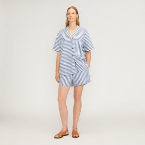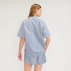 The Poplin Shirt gives the classic shirt silhouette a relaxed. oversized update. Featuring a button-up front. front chest pocket. and elbow-length sleeves. it’s made from a breezy cotton poplin. Pair it with The Poplin Boxer Short for an instant and easy Summer outfit.Cotton poplin is densely woven. making it both durable and breathable. also giving it a crisp. cool feel.