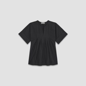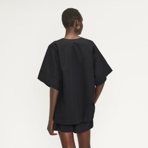 Taking all the relaxed vibes of a Caftan and shortening it into a tunic top. meet The Poplin Tunic. Made with crisp cotton poplin. it features a crew neck with front opening. front pleats. and easy Kimono sleeves.Cotton poplin is densely woven. making it both durable and breathable. also giving it a crisp. cool feel.