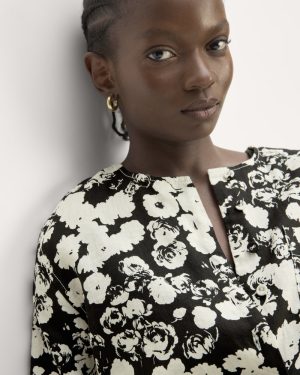 The Popover Shirt in Linen | Black / Bone Floral