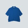 This pull-over piece features a stand collar. front placket with buttons. short sleeves and a straight hem in our eco-conscious Clean Silk. for more beauty and less waste.