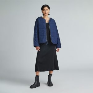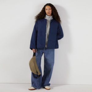 Made with crisp poplin cotton and squared quilting. this liner has a gently oversized silhouette. with a front zipper to keep you snug. It features straight sleeves which can be turned up for different styling effects. plus side pockets. Breathable. but cozy. this all-season jacket is equally cool worn on its own or layered under a coat for added warmth.