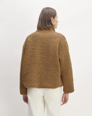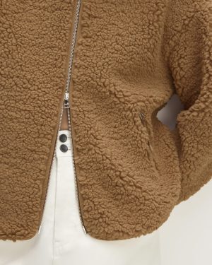 Say hello to our new shearling-inspired fleece zip up. It features a slightly oversized fit with a high neck—to keep the cold breeze at bay. It has zippered pockets and detailed binding on the edges. This sweater will make staying cute and cozy this season a simple feat. Plus. It’s made from 100% GRS-certified recycled polyester* and thoughtfully with bluesign®-approved dyes—which are safer for dyehouse workers and better for the environment. compared to traditional dye methods. *Some of the trim isn’t 100% recycled. but we’re working on it.