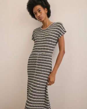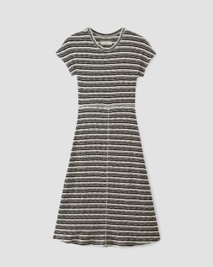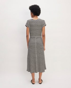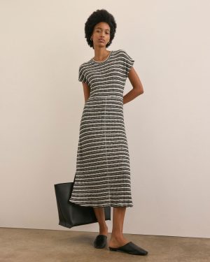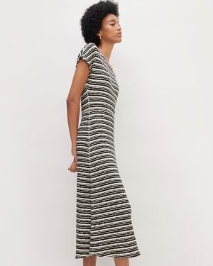 The Rib-Knit Cap-Sleeve Midi Dress | Bone / Black