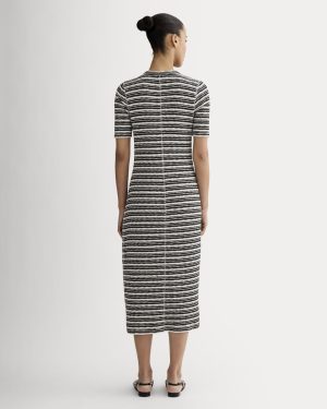 Crafted from a soft blend of organic cotton and ECOVERO™. it offers a casual. textured rib knit with fitted. short sleeves that end just above the elbow. open-neck crew polo. a center back seam. and midi length. Looks effortless on its own. or with a chunky knit to style up your downtime.