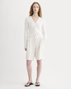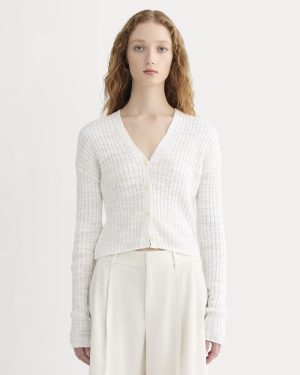 The Ribbed Cardigan in Cotton Linen | White