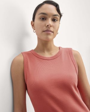This piece features a slim fit. mini length. binding at crewneck and armholes. and made from our best-selling cotton rib knit.