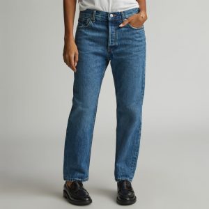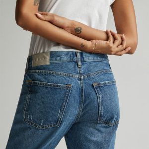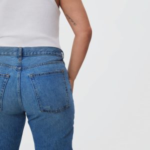 Plus. it has a longer. 27.5 inseam and a relaxed. straight leg. which gives it a comfortable. laid-back feel. If you don’t want a slouchy look. try sizing down so the jeans cover your belly button. Consider it the next evolution of boyfriend jeans.