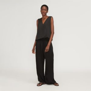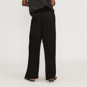 For pants that move comfortably with you throughout your day—and add a little elevated edge. meet The Satin Pull-On Pant. With a fluid and flowy wide leg silhouette. these pants feature an easy-on elasticated waist and seam front pockets. Made with our new lightweight hammered FSC-certified viscose. they have a slight sheen for a pop of polish. Perfect for work or play. The Forest Stewardship Council (FSC) certification ensures that products come from responsibly managed forests. The standards expand protection of water quality. prohibit harvest of rare old-growth forests. ban highly hazardous chemicals. and require forest managers to engage local community members as well as protect customary rights of indigenous people.