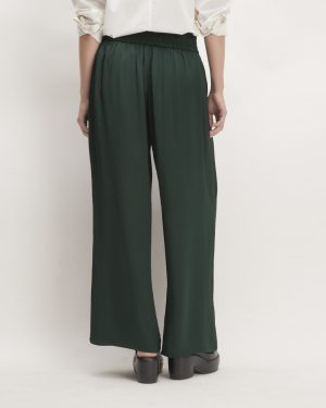 For pants that move comfortably with you throughout your day—and add a little elevated edge. meet The Satin Pull-On Pant. With a fluid and flowy wide leg silhouette. these pants feature an easy-on elasticated waist and seam front pockets. Made with our new lightweight hammered FSC-certified viscose. they have a slight sheen for a pop of polish. Perfect for work or play. The Forest Stewardship Council (FSC) certification ensures that products come from responsibly managed forests. The standards expand protection of water quality. prohibit harvest of rare old-growth forests. ban highly hazardous chemicals. and require forest managers to engage local community members as well as protect customary rights of indigenous people.