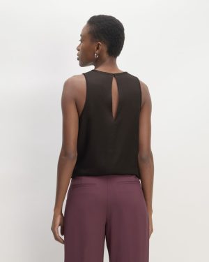 Everyday elegance. the Satin Racerback Top is a tank silhouette featuring a cutaway. racerback style neck. with a button closure. It’s made with our hammered satin FSC-certified viscose which has a slight sheen adding a little extra luxe-looking polish to elevate any pant or skirt look. The viscose in this garment comes from a Forest Stewardship Council (FSC)-certified supplier who was awarded a Dark Green Shirt designation by CanopyStyle. indicating that they have been audited and assessed as being at low risk. or has taken substantive action to eliminate known risk of sourcing rayon and viscose from Ancient and Endangered Forests.