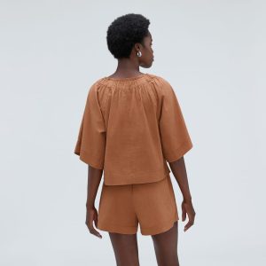 Be the first to review “The Seersucker Gathered Tee | Tawny Brown” Cancel reply