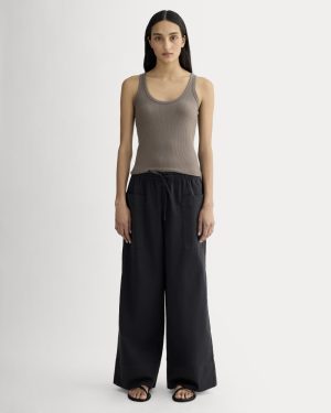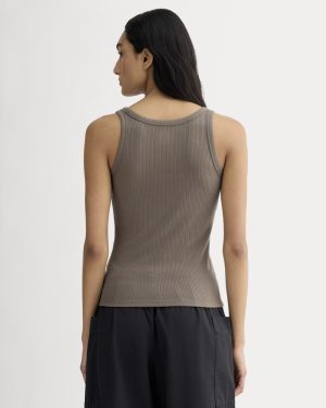 This soft. ribbed knit tank has just the right amount of sheen. giving it a more elegant edge. It features a U-neckline and hits just below the hip. Effortlessly versatile. top with a blazer for office days. or pair with high-rise pants or a maxi skirt for date night.