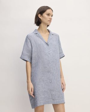 Be the first to review “The Shirtdress in Linen | White / Blue” Cancel reply