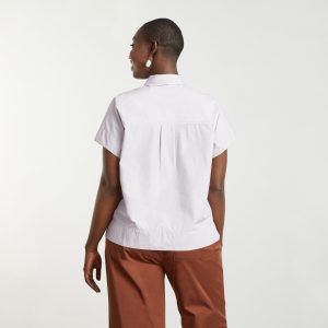The Poplin Short-Sleeve Box Shirt features a notched collar. a clean button front. relaxed short sleeves. utility-inspired patch pockets. and a boxy shape. Wear it tucked into any of our denim for an instantly cool look.Cotton poplin is densely woven. making it both durable and breathable. also giving it a crisp. cool feel.